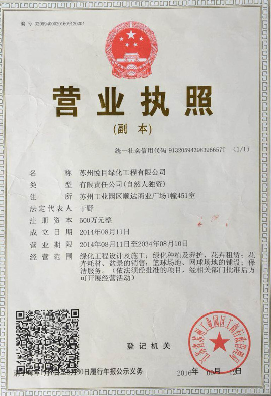 - 悅目綠化為蘇州長期合作的500多家中外企事業單位、酒店、 及蘇州知名企業提供植物租賃、綠化養護和鮮花花藝服務。 多年評為“城市園林綠化重點企業”。